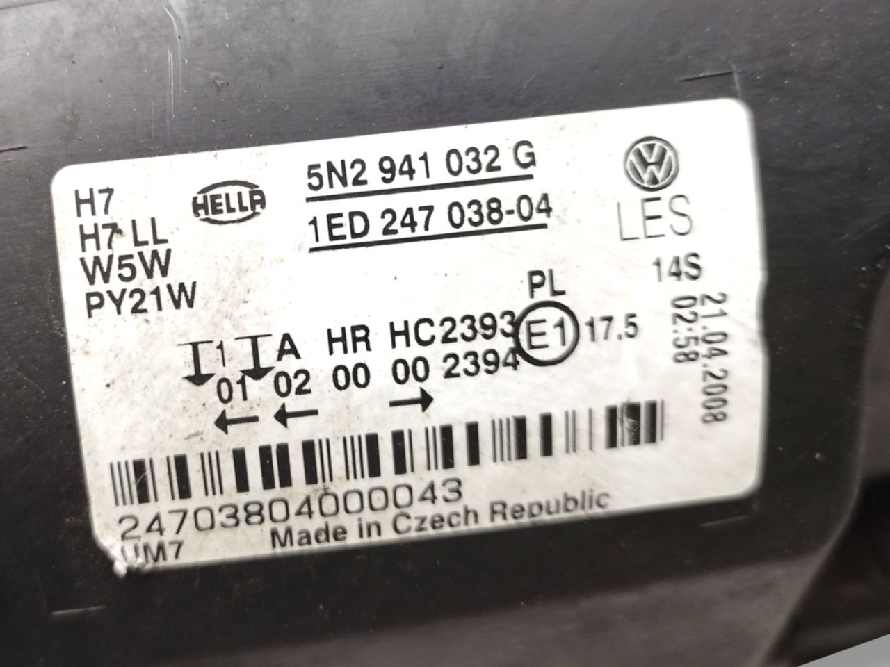 | Номер запчасти | 1ED247038-04, 5N2941032G |