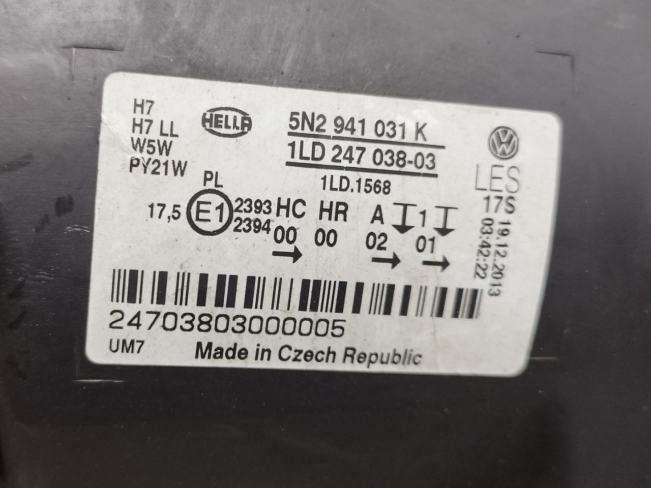| Номер запчасти | 5N2941031K, 1LD247038-03 |